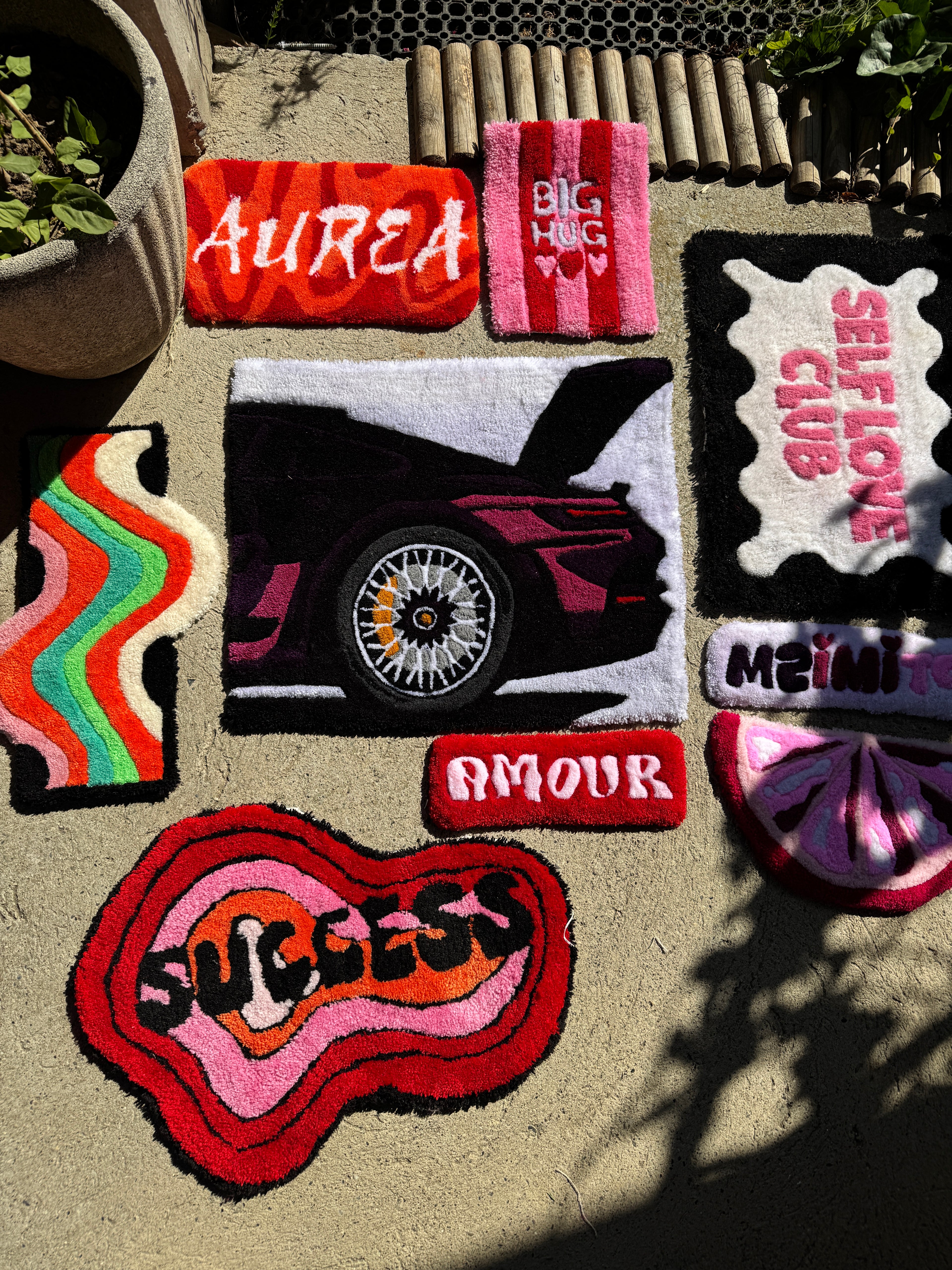 Le tufting, c’est mon terrain de jeu. Chaque tapis est une pièce unique, pensée pour apporter de la personnalité, de la couleur et de la bonne humeur à ton intérieur. Fabriqués à la main, en petites séries ou en pièce unique, ils sont imaginés pour transformer ton espace en véritable safe place. Pas de production massive : juste de la passion, beaucoup d’intention et un goût assumé pour les formes audacieuses et de vraies palettes colorées.